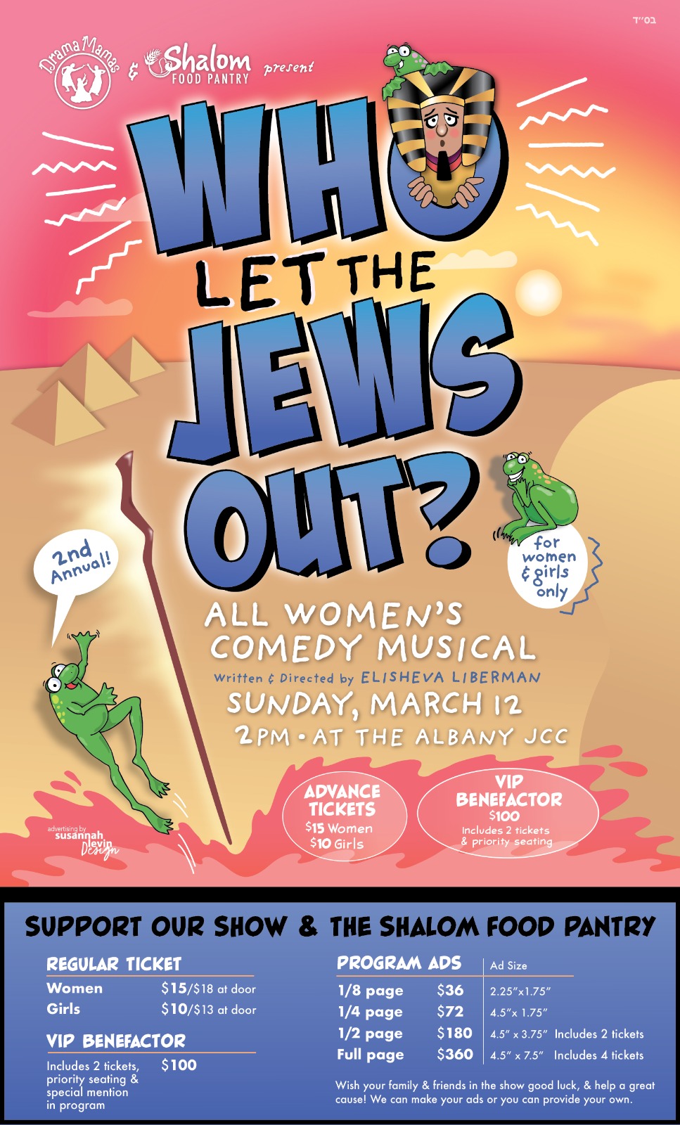 Women's Annual Purim Shpiel brought to you by the Albany Jew Crew. All proceeds will go to the Shalom Food Pantry.