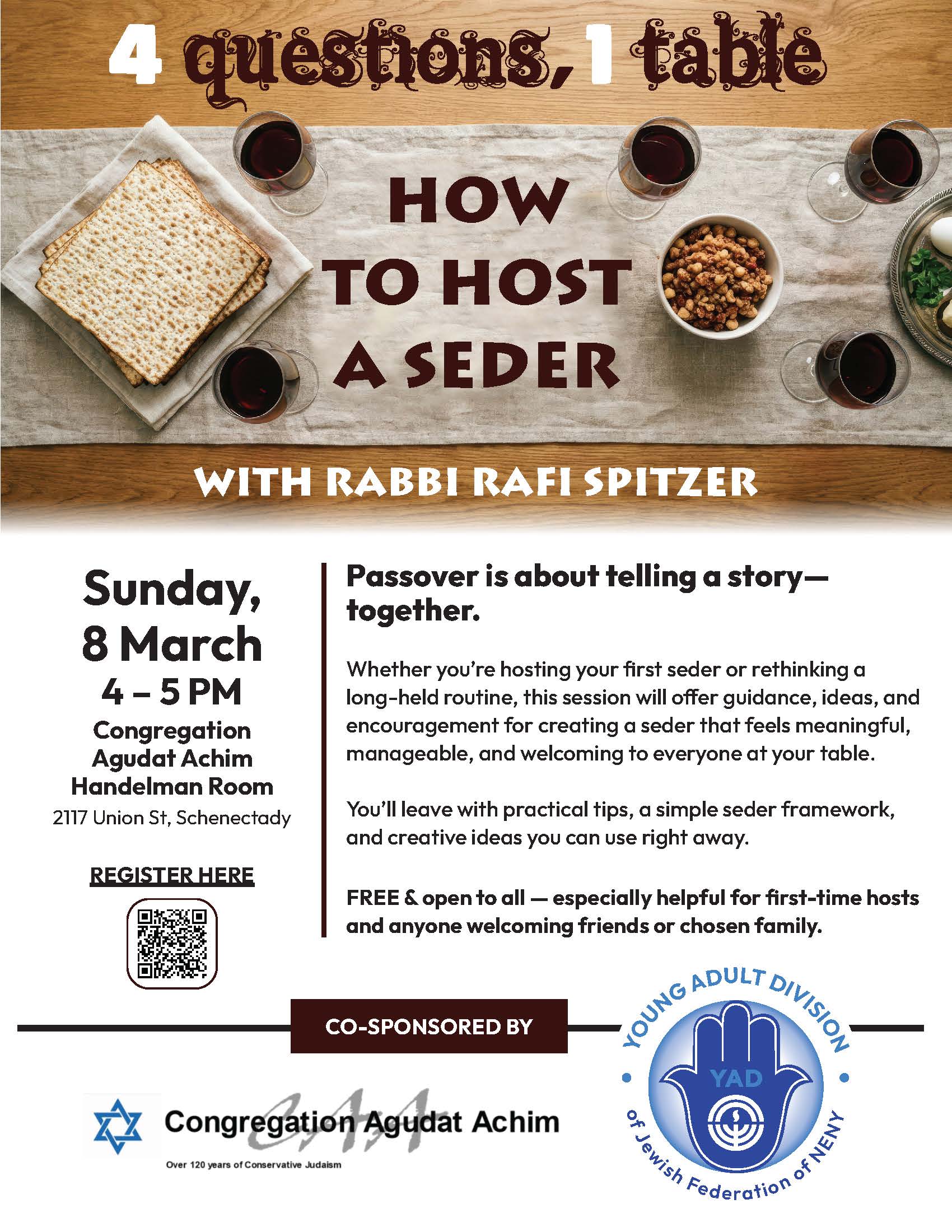 Sponsor: YAD: Young Adult Division of Jewish Federation of NENY & Cong. Agudat Achim, Schenectady