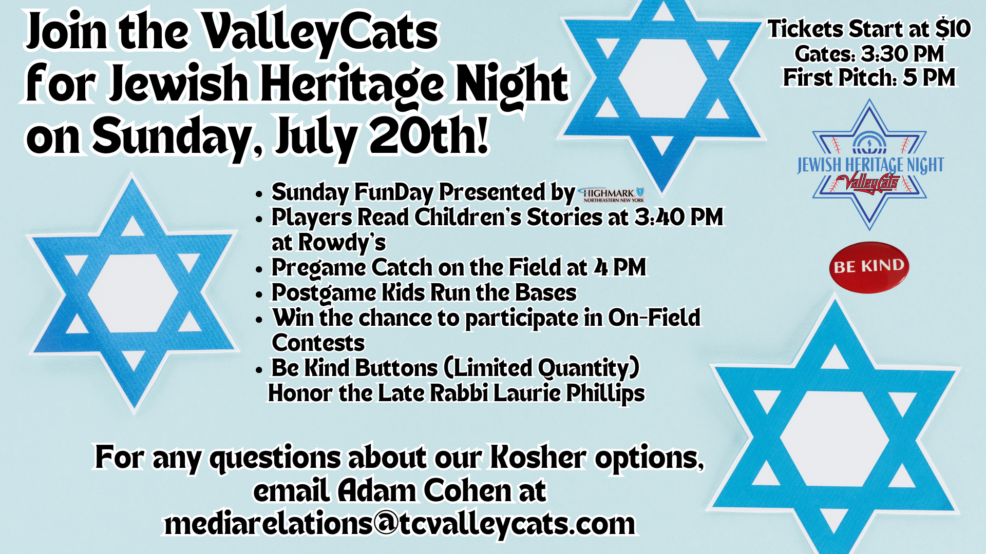 The entire community is invited to Jewish Heritage Night—a night of baseball with the Tri-City ValleyCats and our Jewish community!