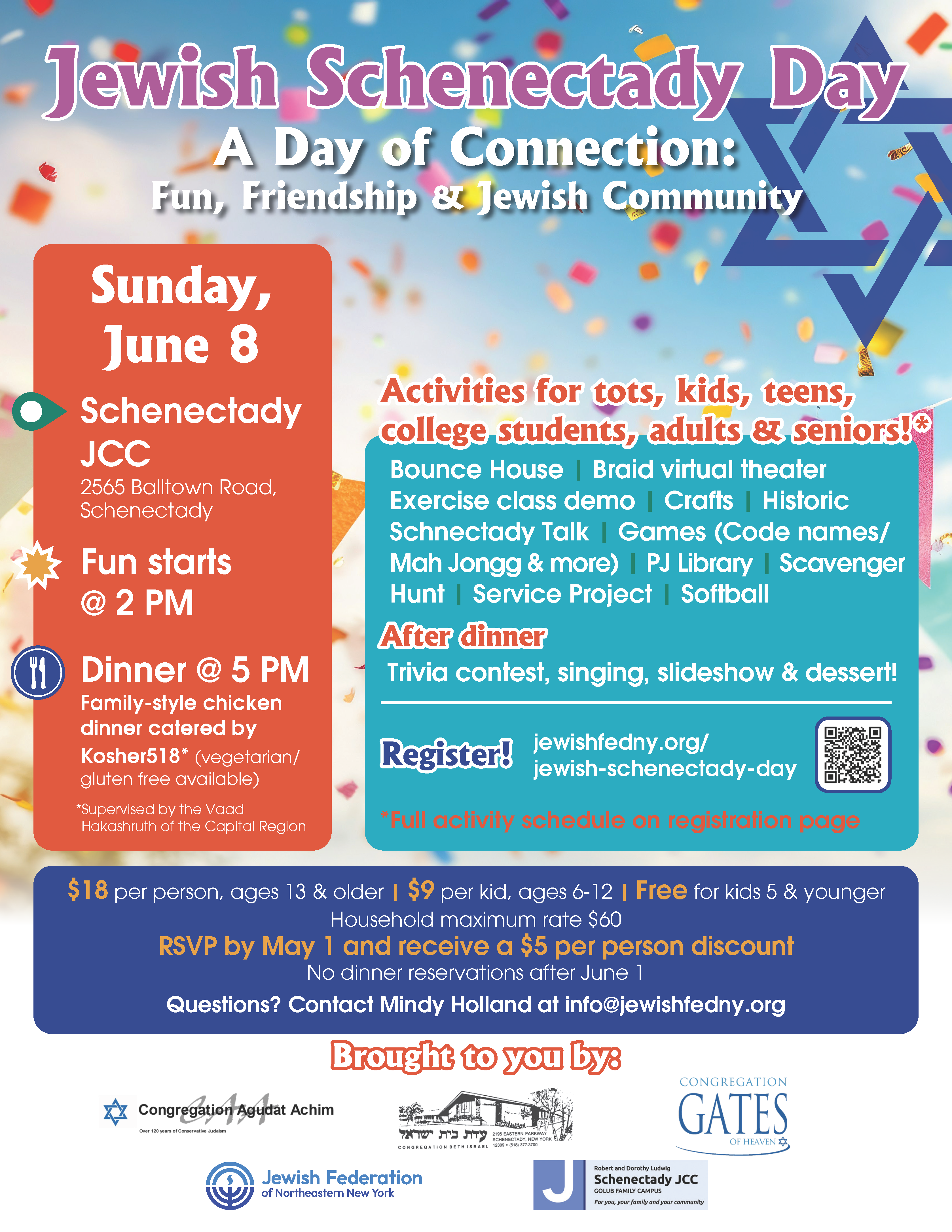 Sponsor: Cong. Agudat Achim, Cong. Beth Israel, Cong. Gates of Heaven, Jewish Federation of NENY & Schenectady JCC